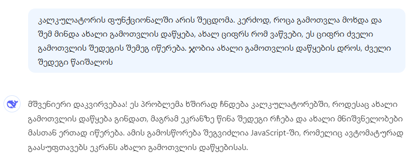 ერთი მაგალითი: copilot-ს ვერაფრით გავაგებინე რომ კალკულატორის . id="display" მარჯვენა მხარეს გაცდენილია